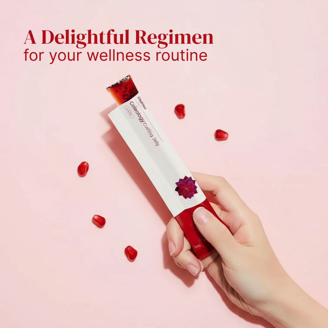 Each stick of Coleology Cutting Jelly blends collagen, hyaluronic acid, and plant-based ingredients like Garcinia Cambogia Extract, indigestible maltodextrin, fructooligosaccharides, chia seeds, and pomegranate concentrate. Together, they support skin hydration, digestive health, and overall wellness—all in a light, fruity jelly that makes daily nourishment simple and enjoyable.
