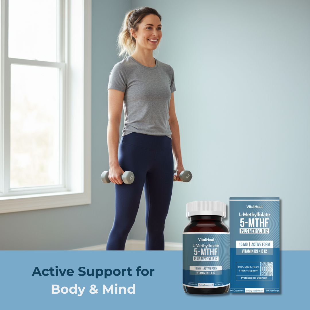 L-Methylfolate (5-MTHF) provides the body-ready form of folate that helps support methylation, mood balance, and heart health.